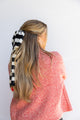 Perfect for topping off a sleek ponytail, clipping into loose waves, or adding a playful twist to a half-up style, it’s the ultimate mix of bold pattern and effortless elegance.