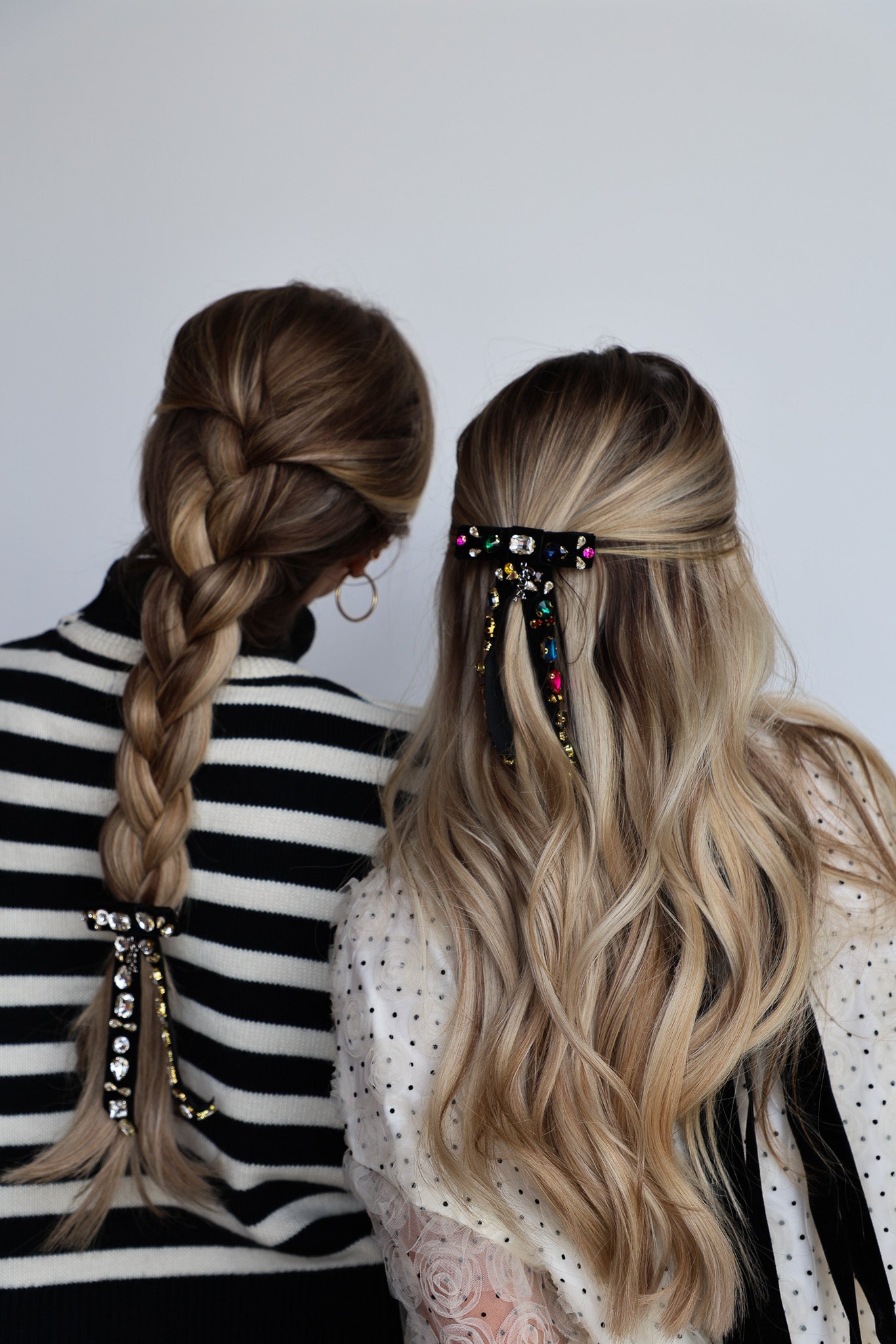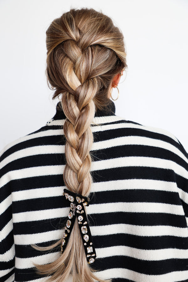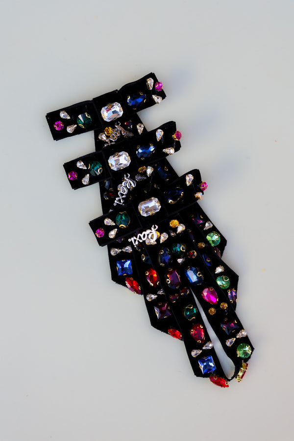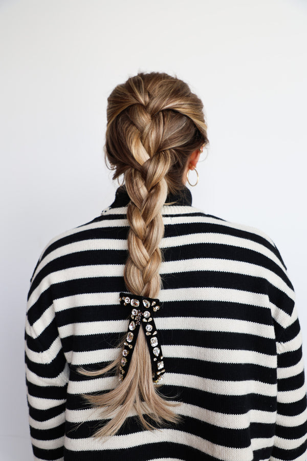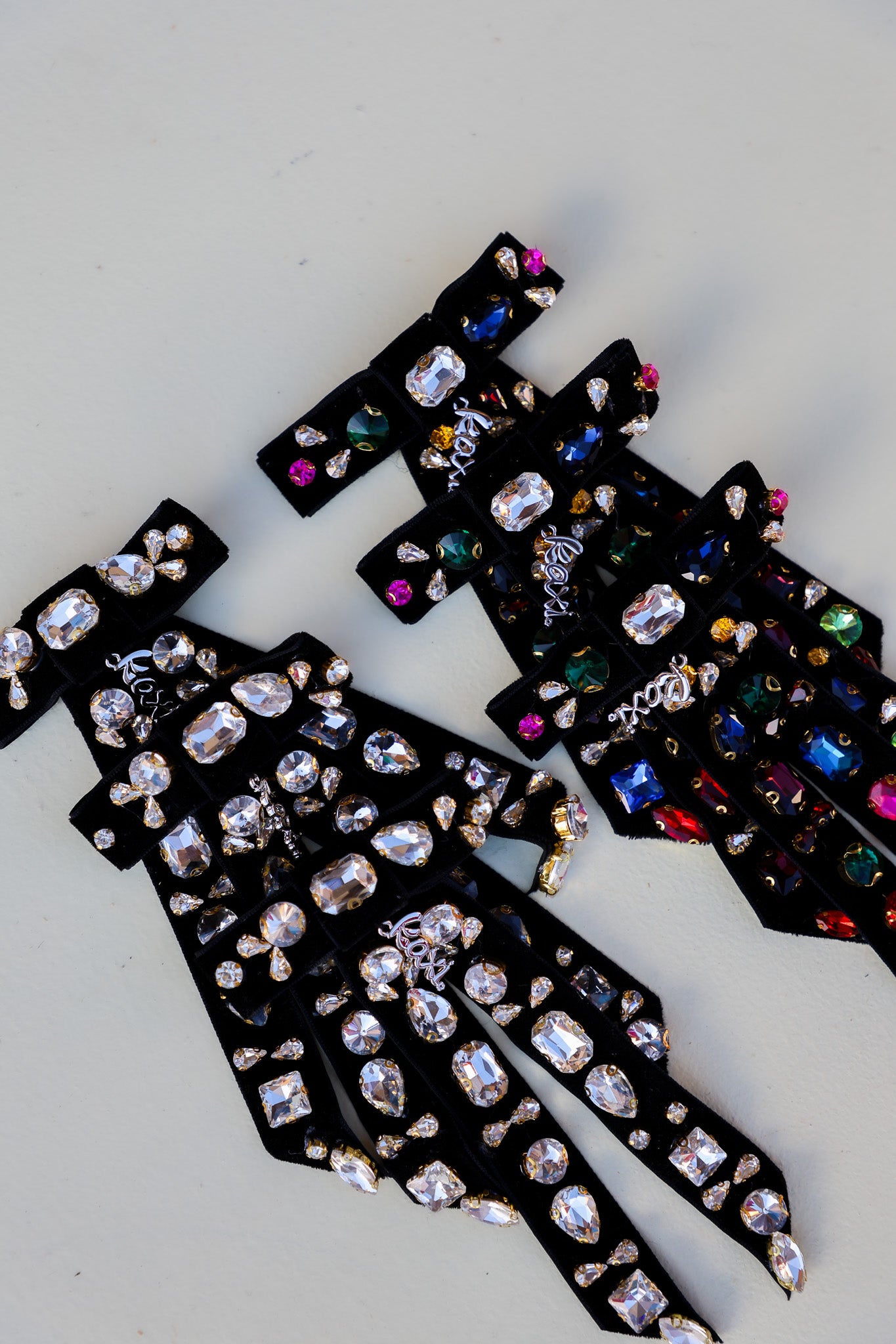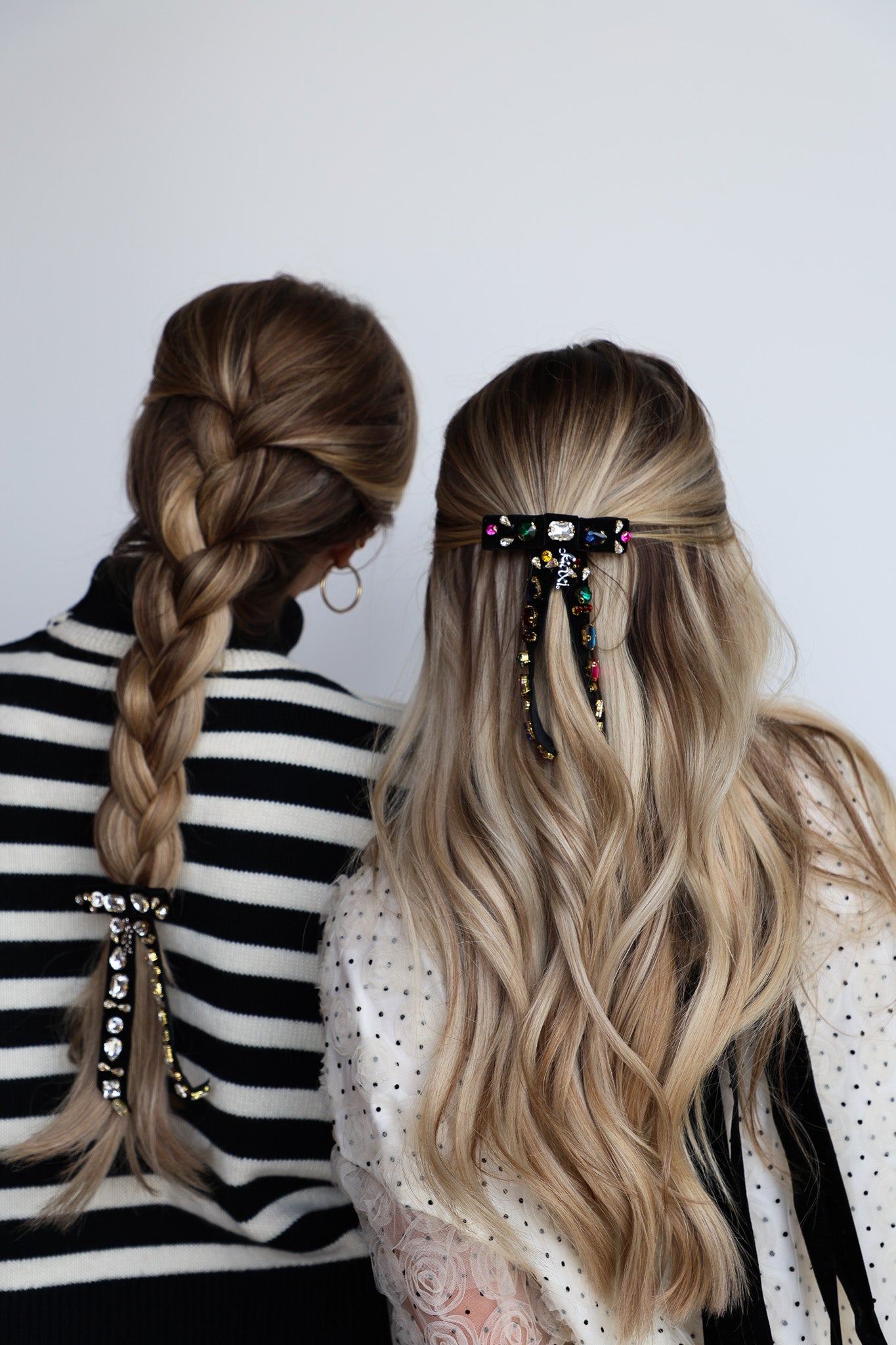 Bring instant glam to any hairstyle with these statement velvet bows, each covered in dazzling oversized gems. Choose between classic clear crystals for a timeless sparkle or vibrant multicolored stones for a bold, playful pop.