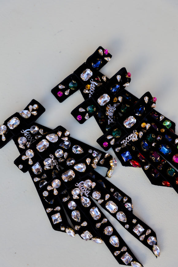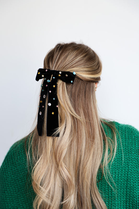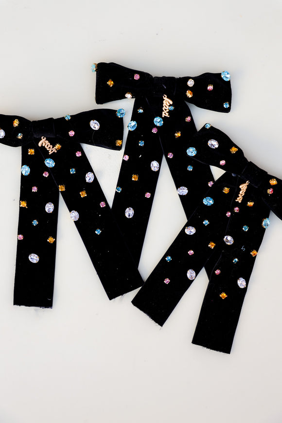 COLORED GEM BLACK VELVET BOW