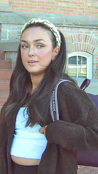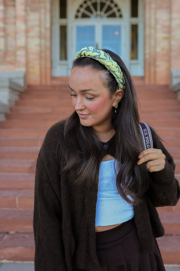 A kaxi headband in one of our original designs!? Exactly what we need! This headband was custom designed in house from start to finish in our signature braided style. This is such a unique headband!! It's perfect, lightweight, classy, and comfortable. It's an easy add on to any fancy outfit or can take a casual outfit to the next level. This headband comes in our kaxi original University Striped Pattern