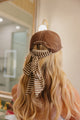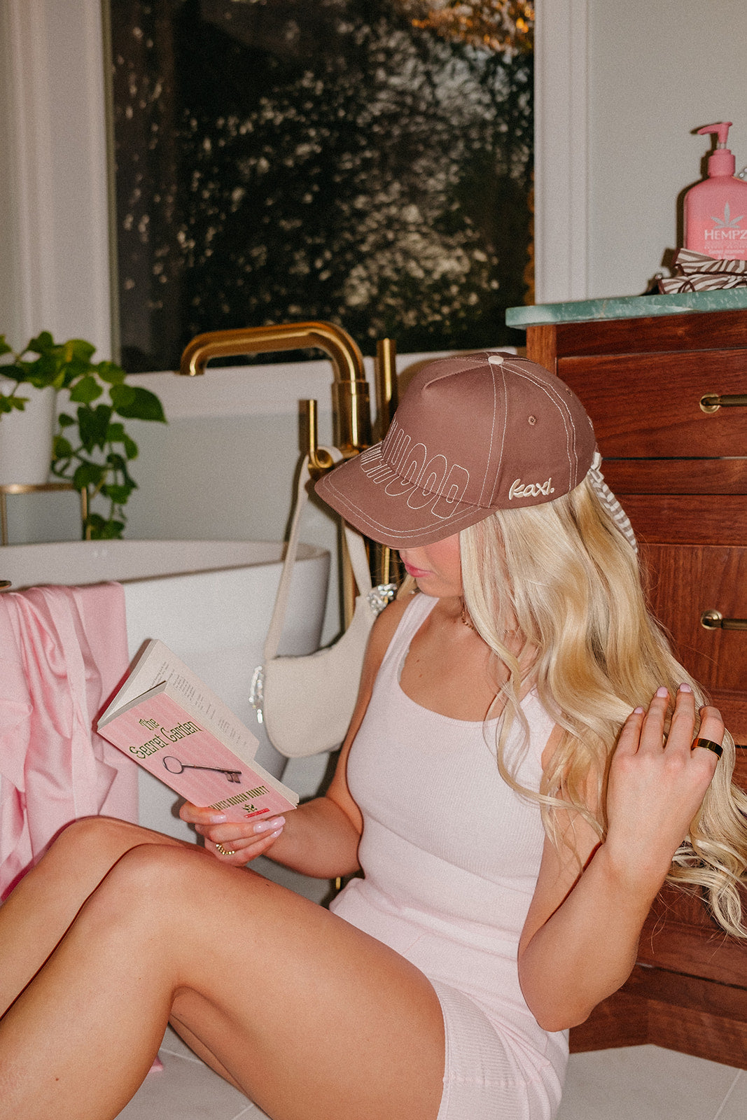 stylish warm brown color but with a fun flair of girlhood stitched into the brim and cap of the hat.