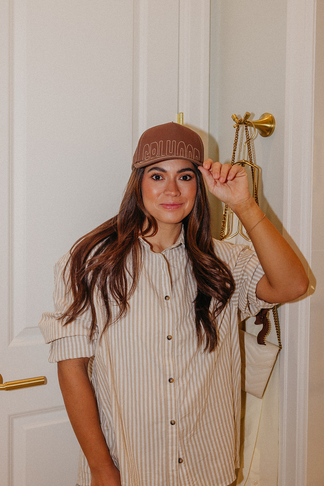 The structured trucker style gives it that laid-back, throw-on-and-go vibe — while the girlhood stitching makes it feel elevated enough to wear with your favorite coat, jeans, or even a casual dress.
