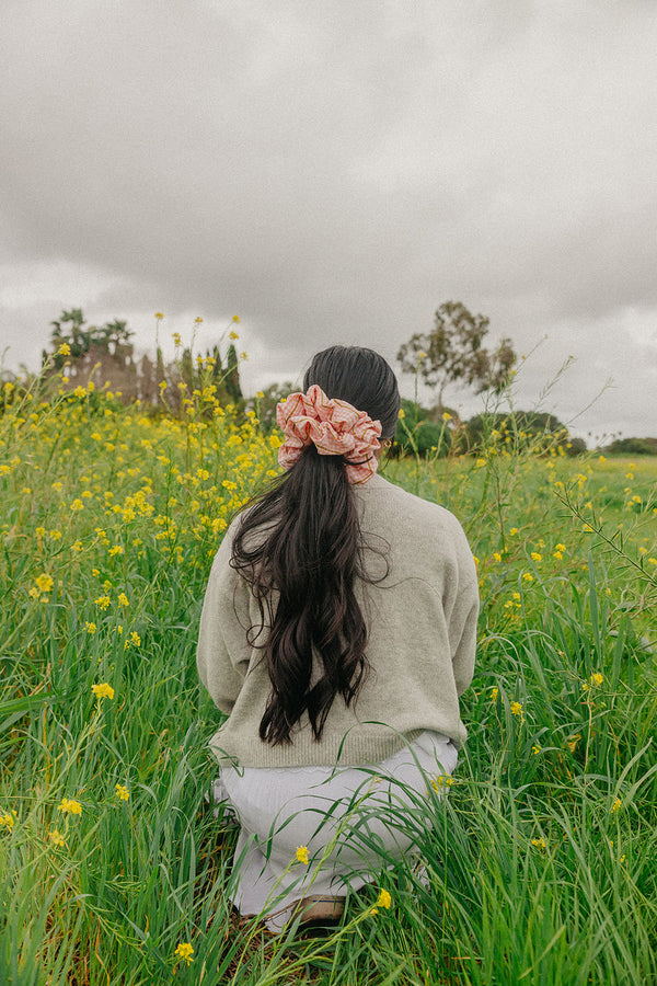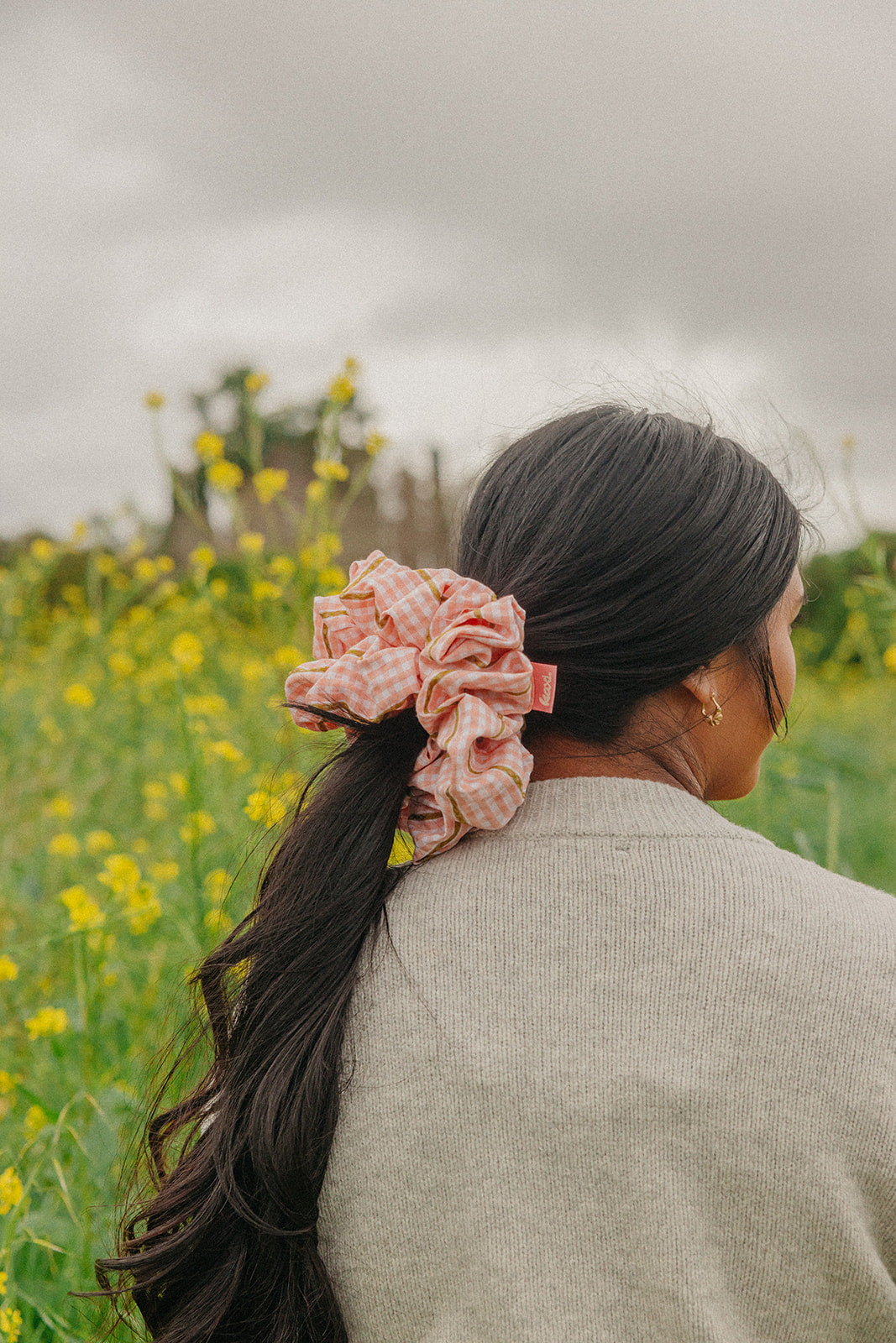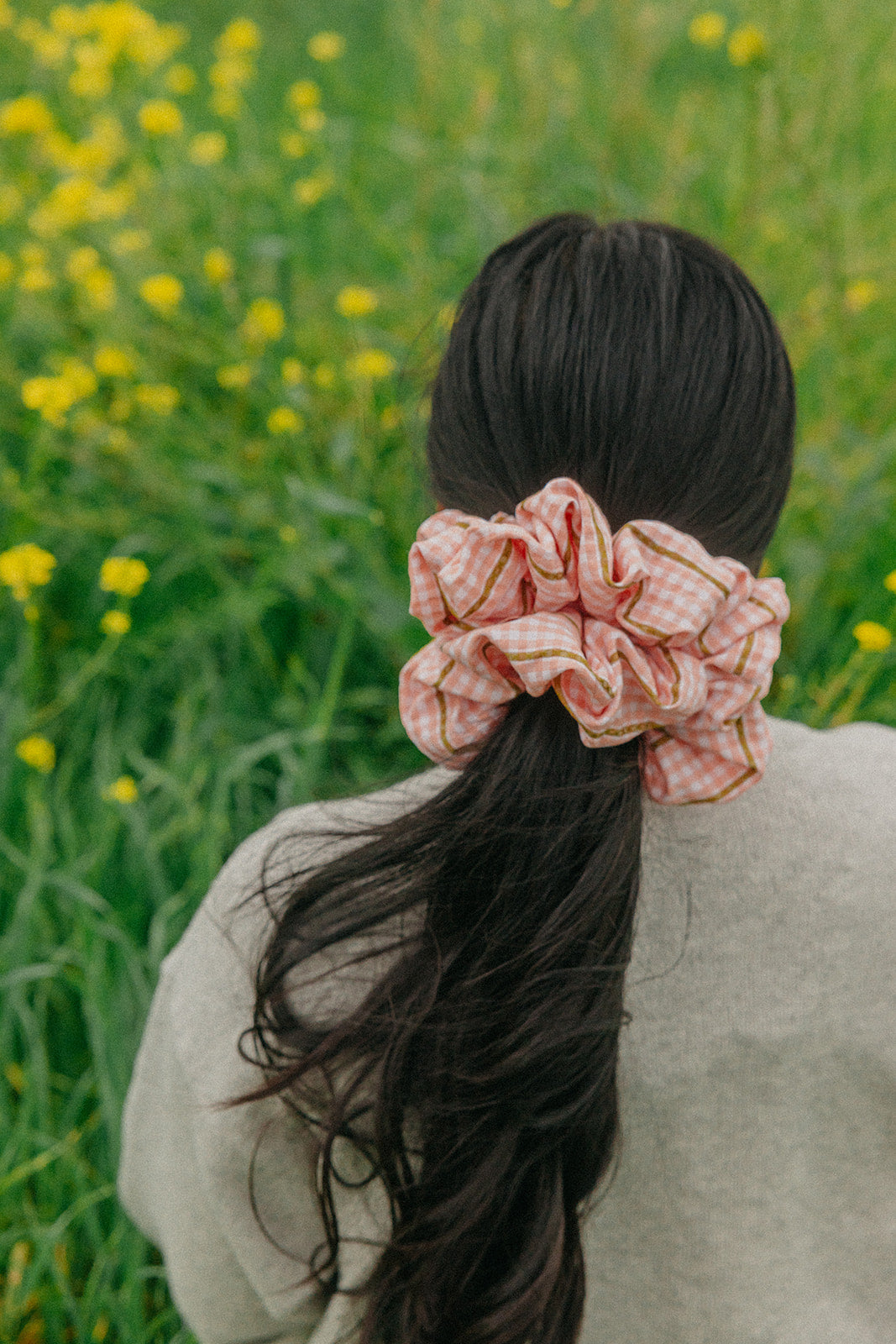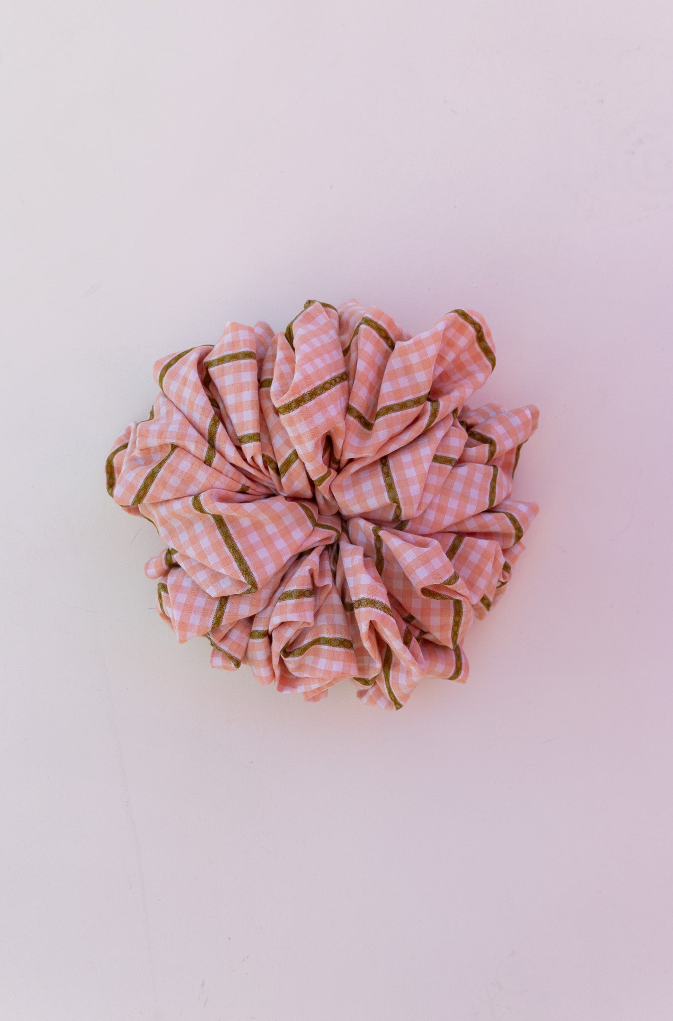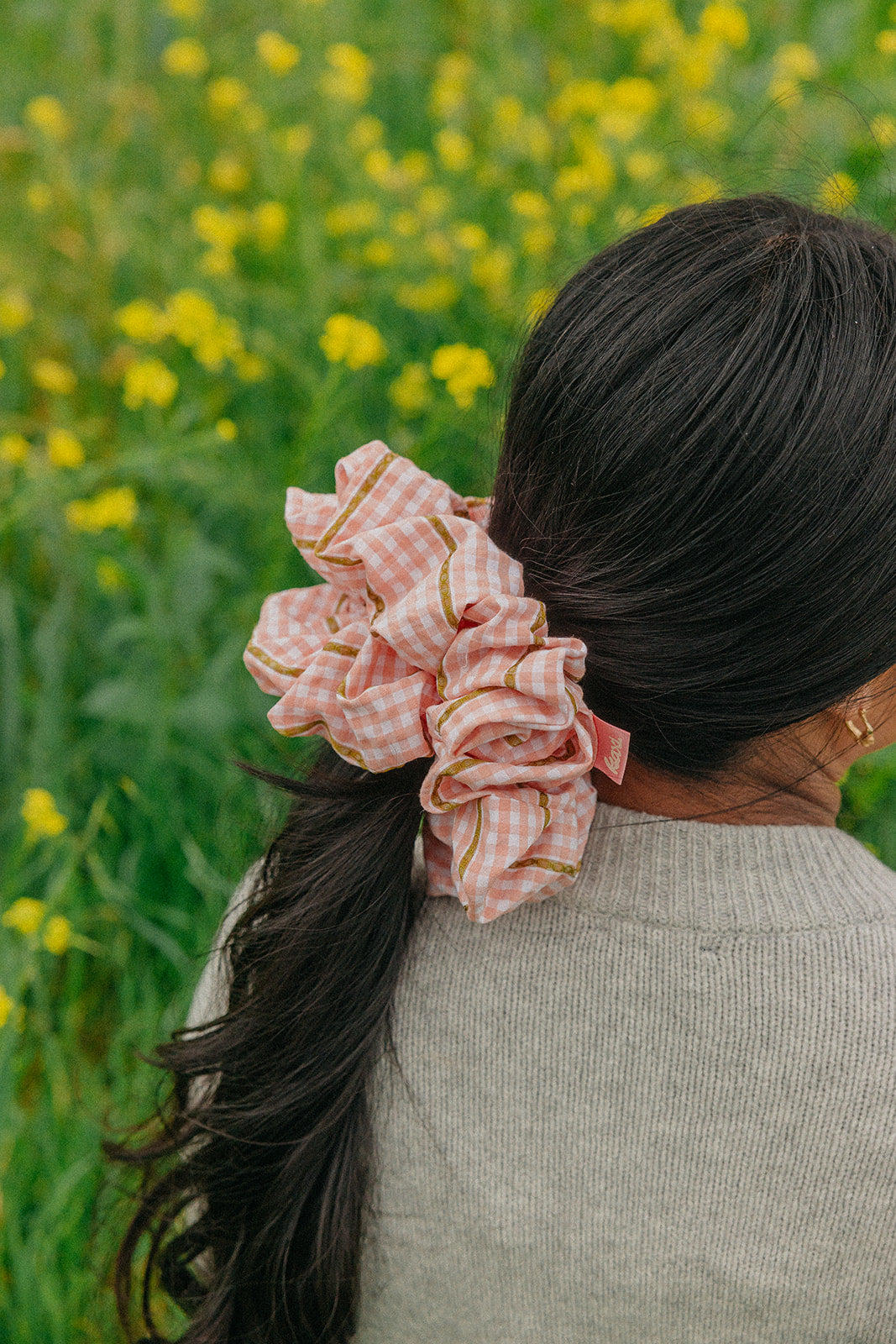 Our Farmers Market Jumbo Scrunchie is designed with extra volume and soft structure to give your hairstyles that effortless, full look. Made from lightweight textured fabric with a classic gingham pattern and delicate gold thread details, it adds the perfect touch of charm to buns and ponytails.