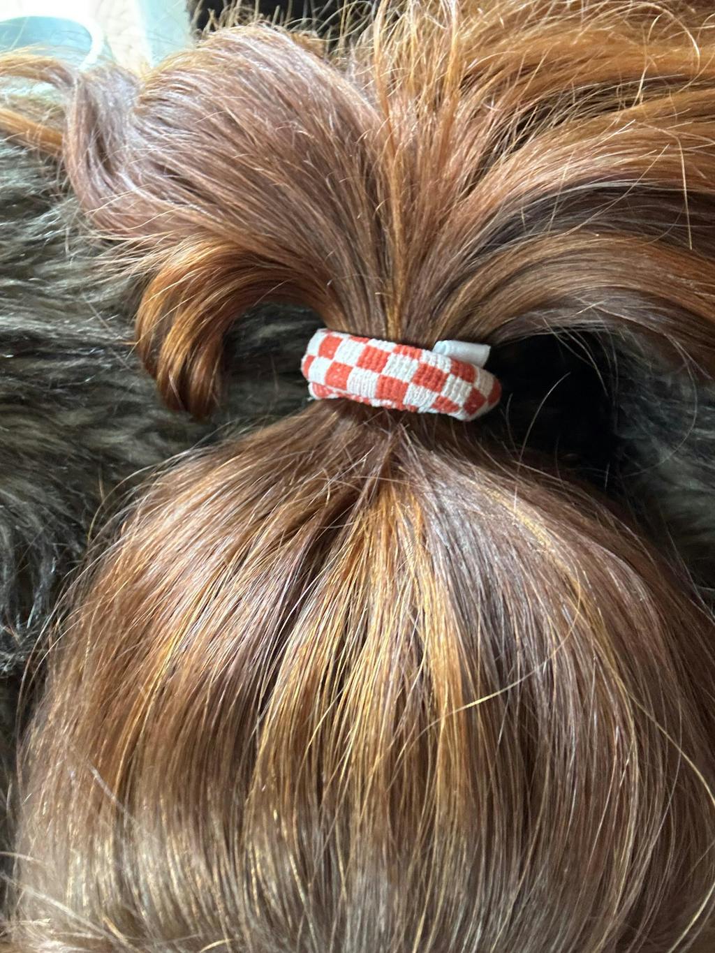 They are a fun checkered print and all completed with our very own KAXI logo on it!! Crafted with a durable yet snug nylon material, these hair ties are designed to keep your hair in place without tugging or causing pain. They are perfect if you need a tight elastic for your high intensity workout, but still offer a stylish look and this elastic is just fabric with no elastic on the inside to damage your hair. Say goodbye to breakage around your face. Works for thin to thick hair! Perfect for pool days, high intensity workouts, or everyday use!
