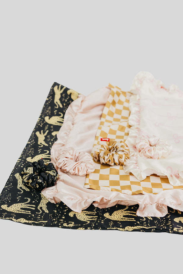 And what's better? Each pillowcase comes with a matching satin midi scrunchie for maximum protection of your hair while you sleep!