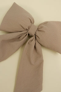 This bow is the girly piece you've been looking for. It has a large barrette style clamp that will stay in your hair all day. What's better? The bow has a little stuffing in it to give it shape and an extra flare of femininity and puff. It comes in our KAXI Exclusive bloom textured pattern. We love the look of this classic bow with a little KAXI twist. Completed with a KAXI charm in the middle.