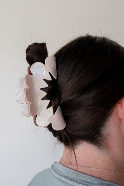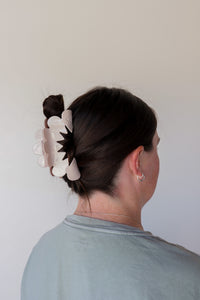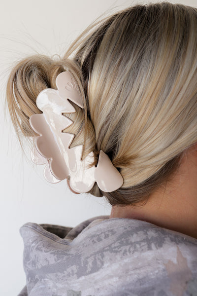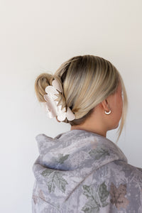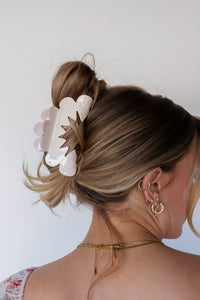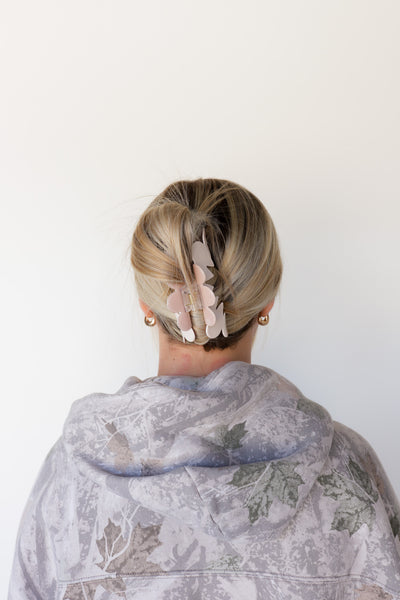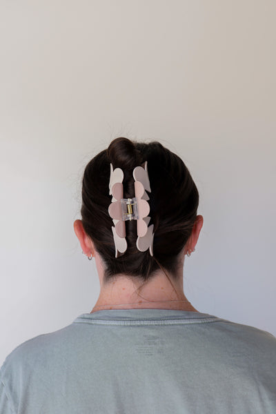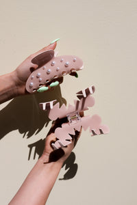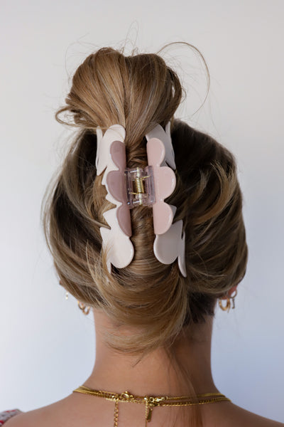 Coming back in our best selling style, this claw is a pink loving girls dream. With the cutest arch shape of petals and the most subtle pink shade on the outside with a shimmery pink on the side. And everything is pulled together with an engraved kaxi K. This is the cutest claw, you need it!