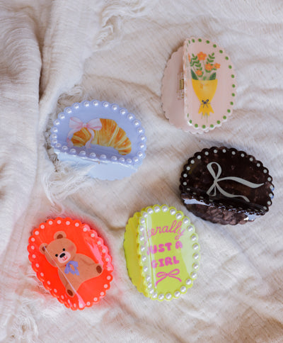 Meet the Scalloped Frame Claw Collection — the clips that do way more than hold your hair up. Each playful scalloped edge is like a little crown for your messy bun or power pony, complete with an extra dose of personality.
