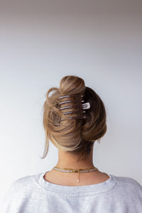 Designed for both style and comfort, these accessories secure your hair in place without the tugging or discomfort of traditional clips. And the best part? You can lay down in them and they will hold all of your hair all day long.