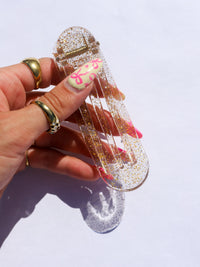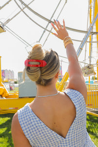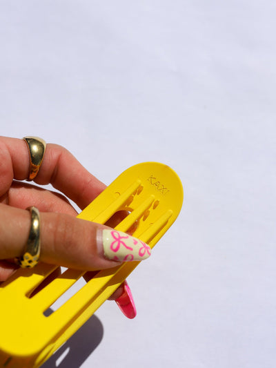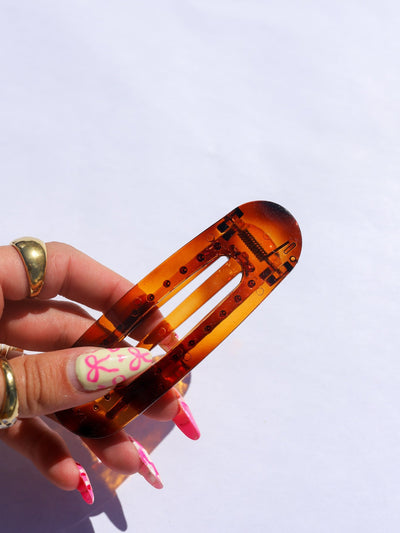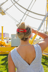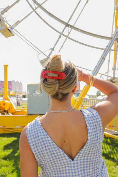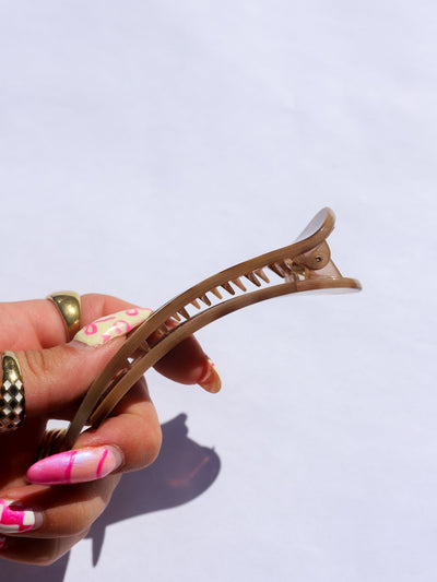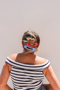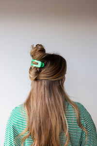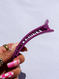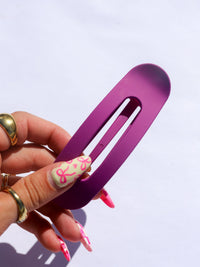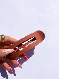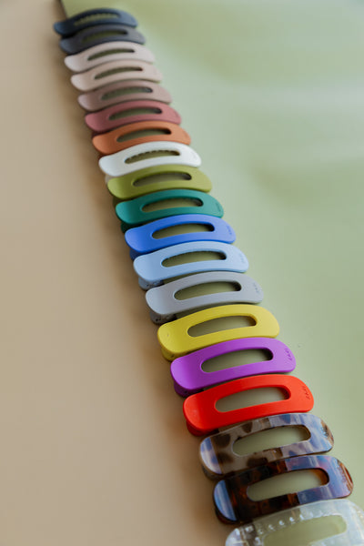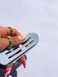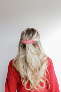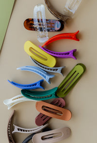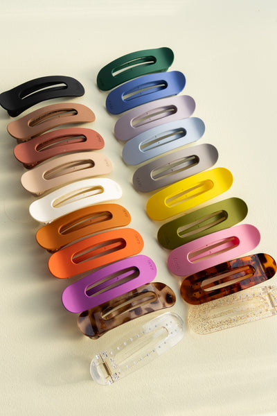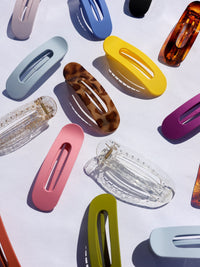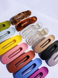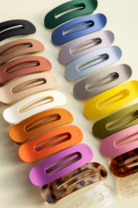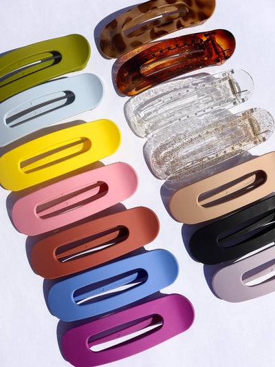 These clips are extra big, and can hold all your hair back without creasing it. They are unique, sturdy, and so stylish. ALSO added bonus that they are flat, so you can pull your hair back in a 'claw style' and still be able to lay your head on the headrest when you drive, or lay down flat without it hurting your head! They come in lots of different colors all listed and pictured below!!