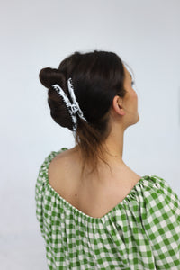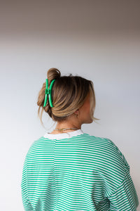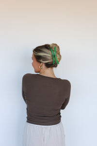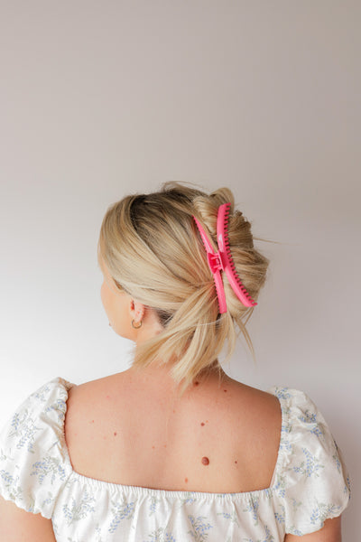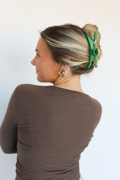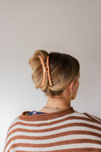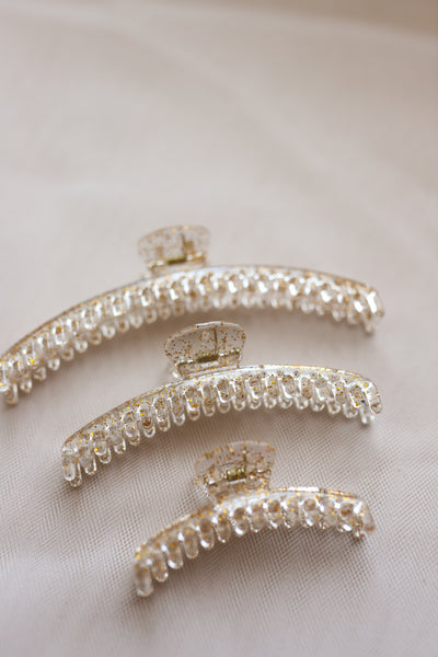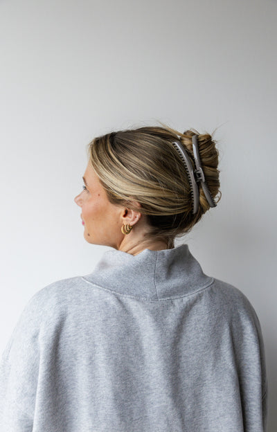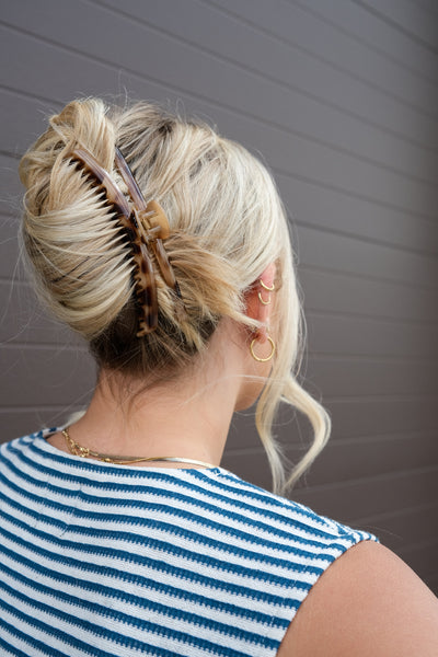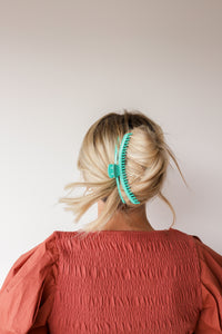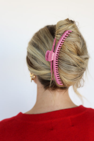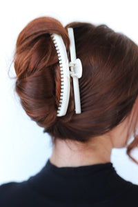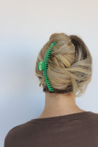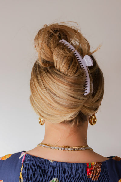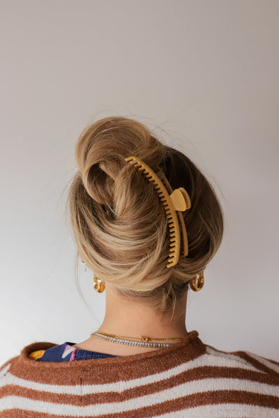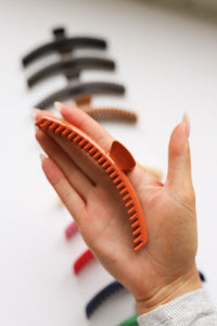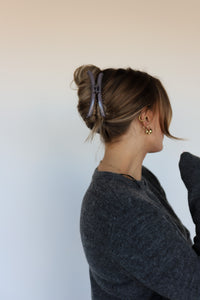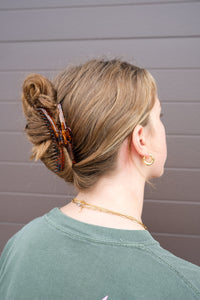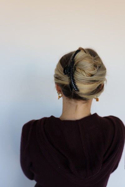 The 'Hold Everything Claw' now in a new shiny finish. It really can hold everything!! It looks deceiving because of its size but trust me, when you learn how to put it in your hair, it's not going anywhere!!